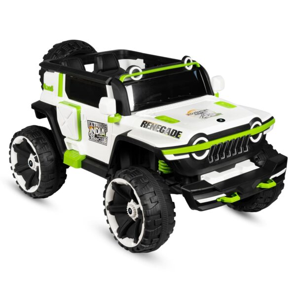 - [Ultra Safety with Slow Start Mechanism]: Safety is a priority with this kids’ jeep, which includes a slow start mechanism to prevent sudden jolts. The powerful motor and LED headlights on both the front and back provide excellent visibility, especially during evening drives. The steering wheel allows gentle adjustments, ensuring safe and controlled turns.
