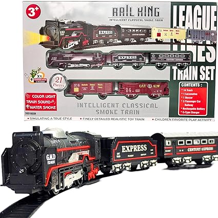 - COMPLETE SET: 21-piece train set includes locomotive, boxcar, passenger cars and tracks for an immersive railway experience